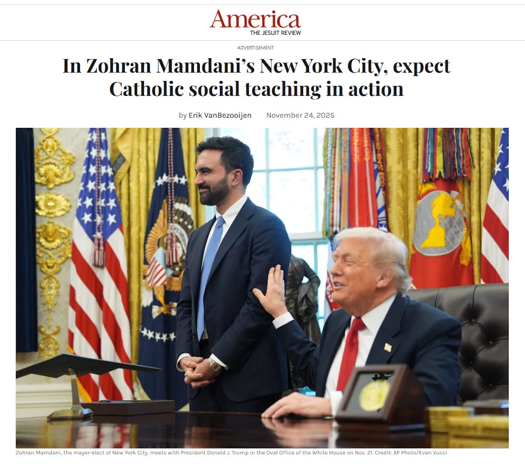 Erik VanBezooijen, “In Zohran Mamdani’s New York City, expect Catholic social teaching in action,” America Magazine, November 24, 2025, https://www.americamagazine.org/short-take/2025/11/24/zohran-mamdani-socialist-catholic-social-teaching/ ; Barf.